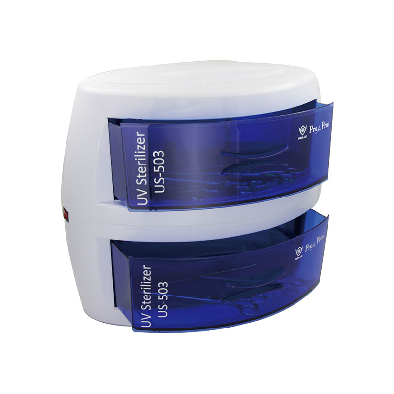 UV STERILIZER – DOUBLE DECK The UV sterilization unit uses ultraviolet sterilizing lights that operate at an incredibly effective wavelength of 254nm. *Ideal for keeping grooming tools free of bacteria. *Double Compartment Design lets you clean and store twice the tools. *Simply place items inside, turn on the switch and leave on for 30 minutes. Note: It can also be used for everyday items such as glasses, telephones, keys, cosmetics and more.